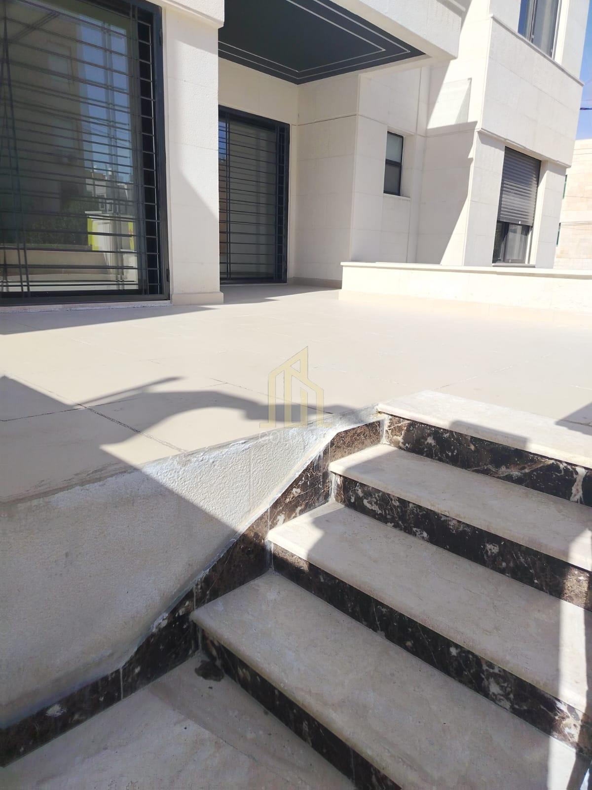 في موقع مميز في الدوار الخامس شقة أرضية 150م مع ترس 35م بتشطيبات راقية